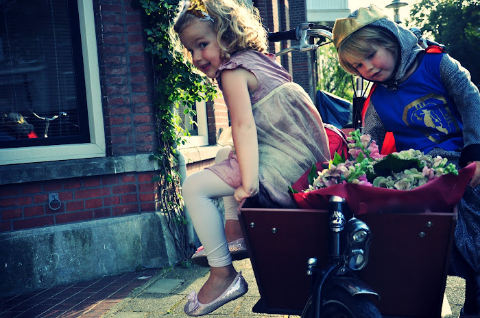Mon bakfiets, c'est un peu ma voiture ici. Il me permet de transporter ma fille, les cartables et les lunchboxes à l'école, de charger les courses et divers achats, et mes garçons adorent le remplir de pelles, ballons, et cerf volants pour la plage.